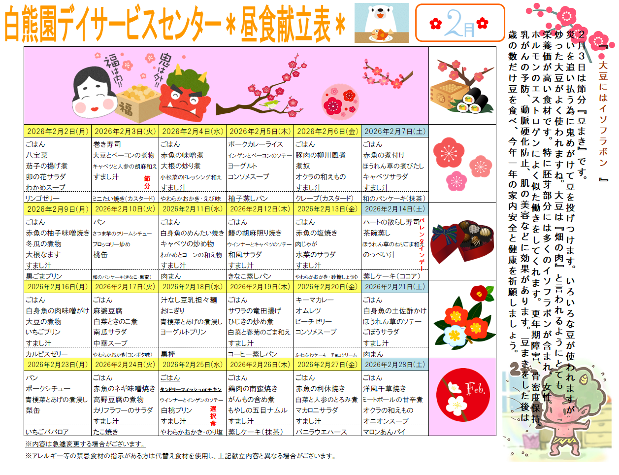 月間献立表