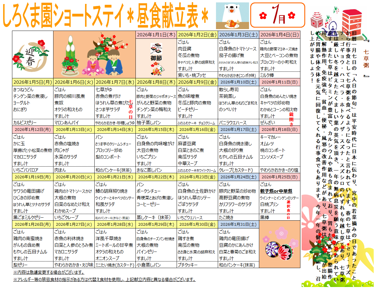 ● 月間献立表(昼食とおやつのみ記載)